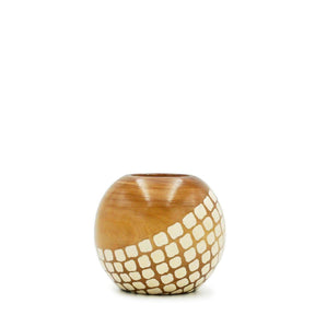 Support à bougie en bois massif, entièrement décoré à la main par Ana Godinho avec un motif évoquant les célèbres trottoirs portugais.
