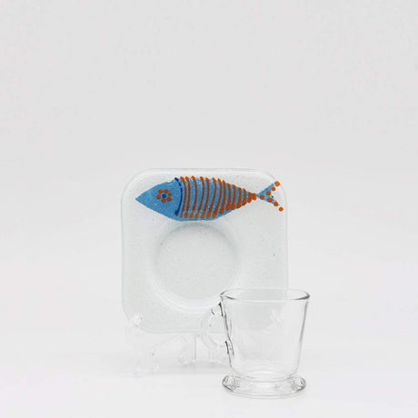 Tasse et sous tasse en verre fusionné "Sardinha"