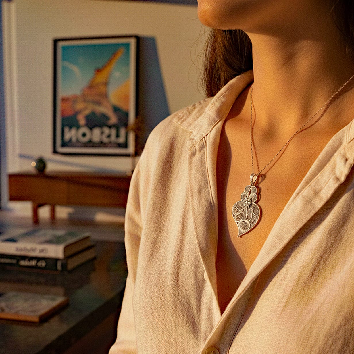 Pendentif en filigrane d'argent à porter seul, naturellement ou comme un signe discret d’attachement au Portugal.