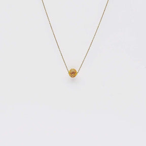 La perle et le collier sont réalisés en argent massif 925/1000e et la finition or est obtenue par un bain d’or, révélant une lumière chaude et douce.