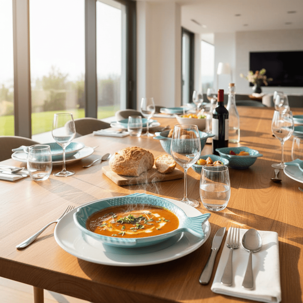 Assiette creuse, parfaite pour servir une soupe de poisson évidemment mais également une salade, un plat de pâtes ou des condiments à l'apéritif. Elle sera, dans ce cas, mise en valeur si elle est disposée sur une sous assiette blanche.