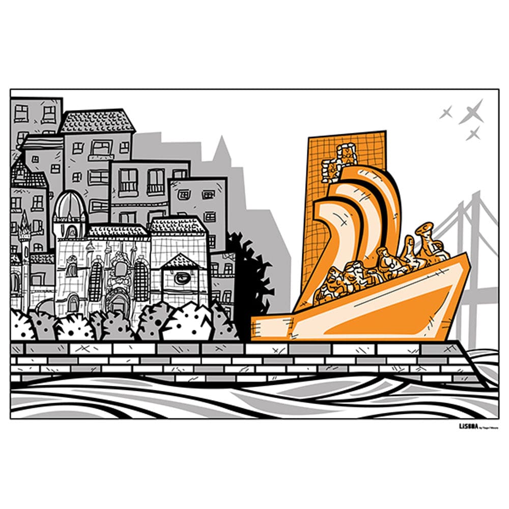 Artwork by Tiago Moura illustrating the famous Padrão dos Descobrimentos, the monument erected in Lisbon on the banks of the Tagus River, in honor of the Portuguese navigators who discovered the world in the 14th century.