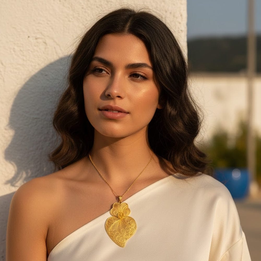 A majestic pendant, the largest in our collection, all in solid silver 925/1000e gilded representing a Heart of Viana.