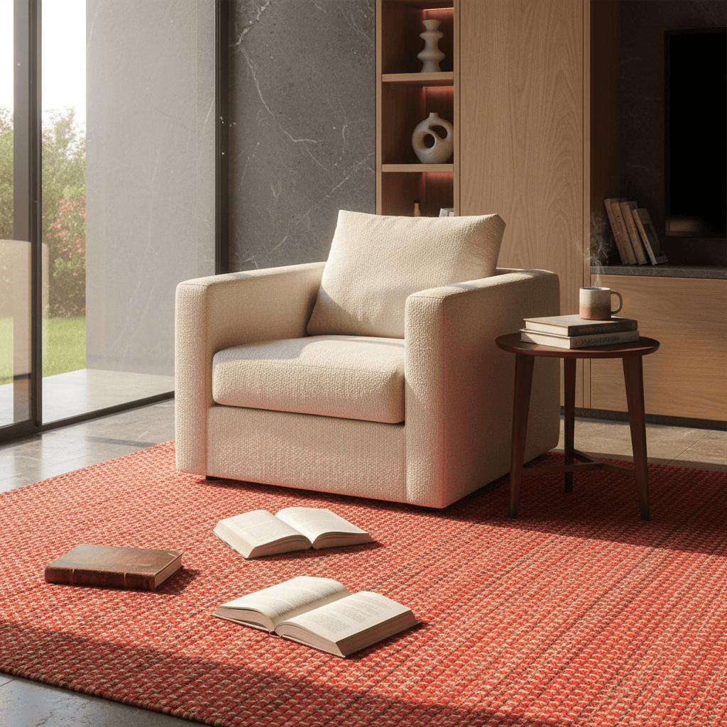Cette composition associe fibres naturelles, coton et cellulose pour la douceur et le confort, tandis que le polyester et l’acrylique assurent une bonne tenue, une belle résistance et un entretien facile. Un équilibre idéal entre naturel, durabilité et praticité.