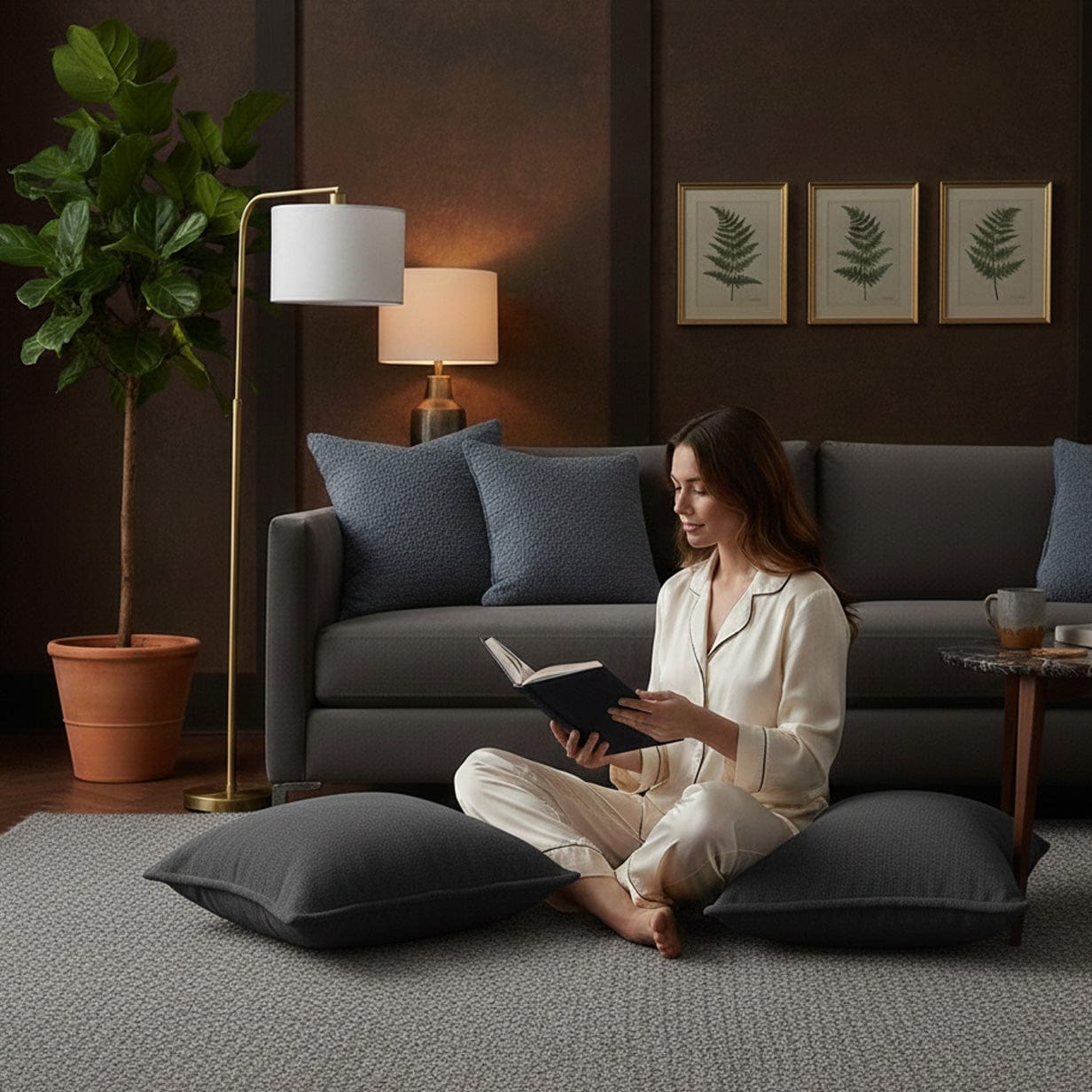 Large dark grey cushion cover designed to be filled with a 60x60cm cushion.