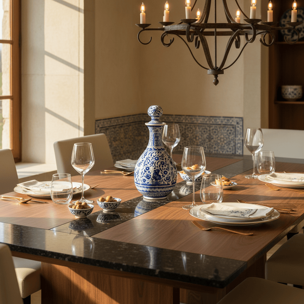 Posée sur une table, un buffet ou une étagère, cette carafe attire naturellement le regard. Elle peut accueillir de l’eau, du vin ou simplement devenir un objet décoratif chargé d’âme. Comme toutes les céramiques de Coimbra, elle porte la trace du geste de l’artisan et aucune pièce n’est exactement identique.
