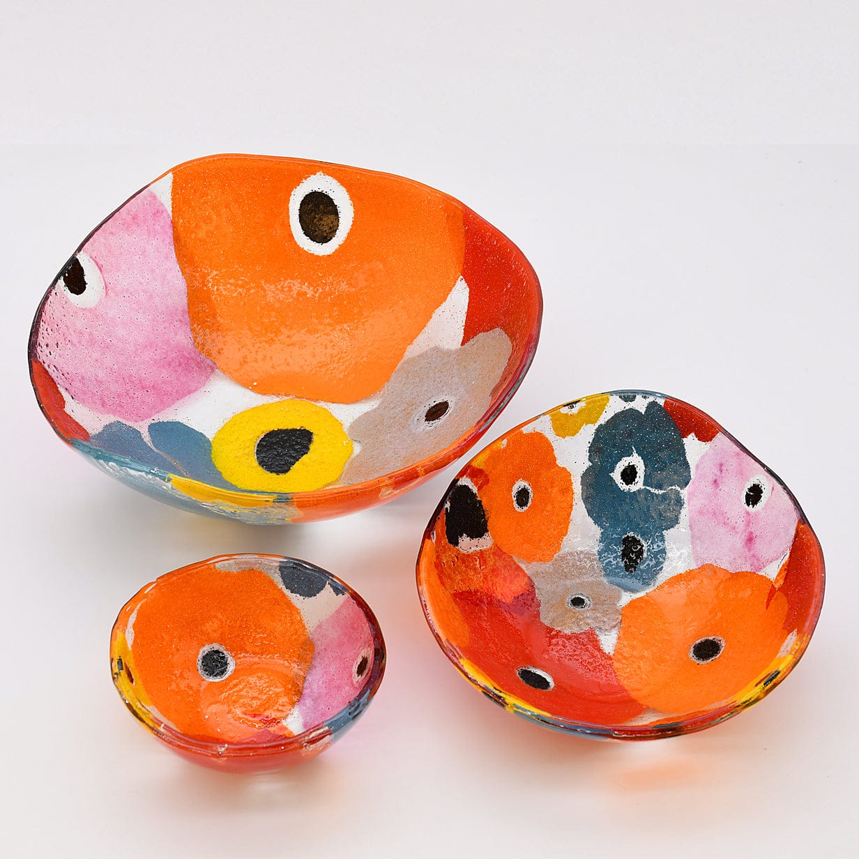 Chaque pièce est unique. Si les couleurs restent fidèles, les motifs se déplacent, se rencontrent autrement. Le geste artisanal ne se répète jamais à l’identique, c’est cette variation qui donne à ce saladier son caractère singulier.