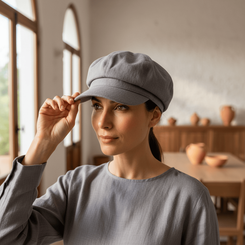 Inspirée des gavroches traditionnelles à huit pointes, cette gavroche dans une couleur classique grise joue avec les codes : Souple, vivante, facile à arranger selon l’humeur du jour. Le lin respire, accompagne les saisons et laisse la tête légère. À l’intérieur, un ruban élastique discret assure maintien et confort, sans contrainte.