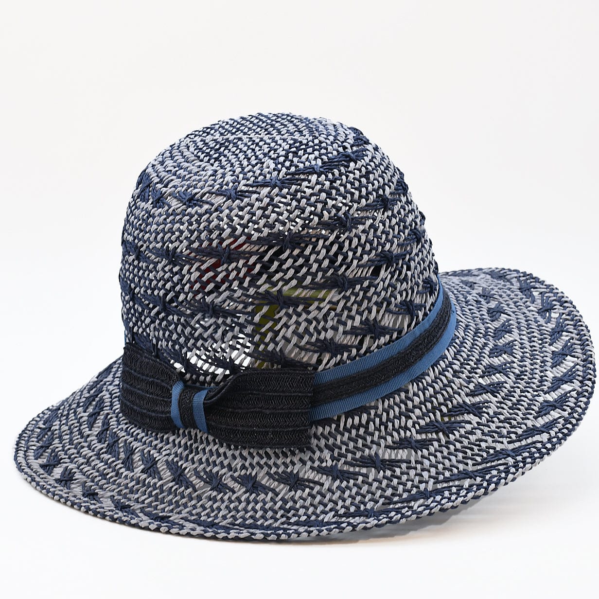 Chapeau de plage en fibres végétales - Bleu & Blanc