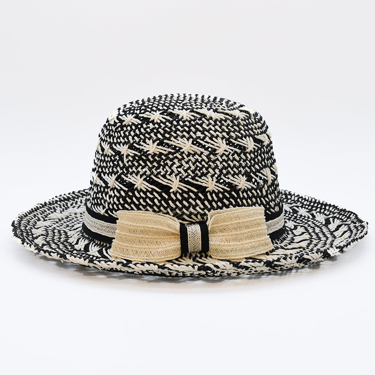 Chapeau de plage en fibres végétales - Noir & Blanc