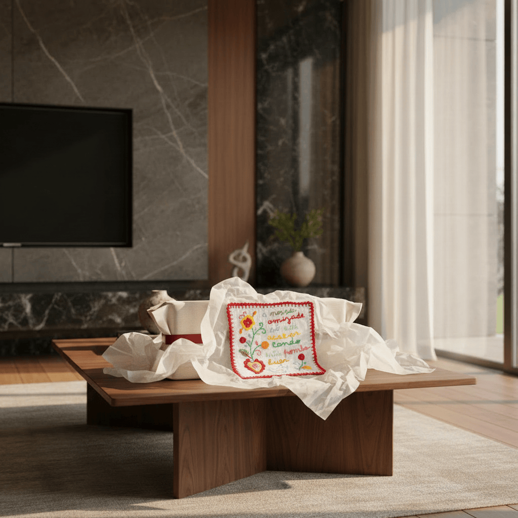 Le « Lenço de Namorados », littéralement le mouchoir des amoureux, est un mouchoir en tissu fin, brodé de motifs colorés et de phrases ou de vers. Il s’agit d’une tradition portugaise emblématique, caractéristique de la région du Minho, dans le nord du Portugal.