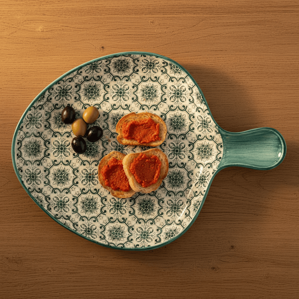 Ce plat, prolongé par une poignée est parfait pour présenter des aliments chauds comme les tapas portugais, les fameux petiscos.